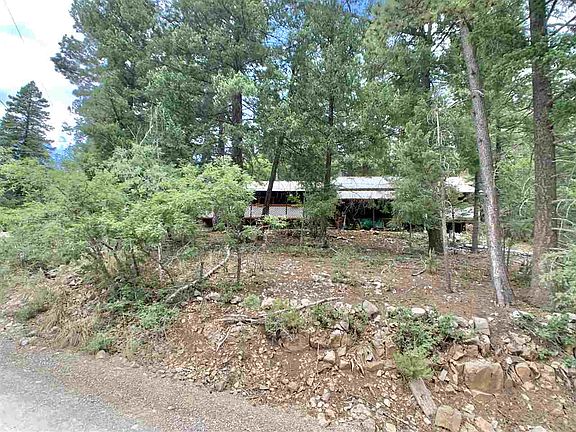 Mountain home with deck views is just 3 miles from the village of Cloudcroft in the Sacramento Mountains. This single wide mobile home is offered turn-key with all furnishings + log splitter included. Toasty wood stove in living room, roomy kitchen has 2 pantries, banquet dining. Master suite with large bath is off the living room on one end with 2 more bedrooms & bath at the other, + washer/dryer. Covered deck spans entire 76' length of home. Carport, wood storage, shed. Sits on 2 lots, 1/2 acre.