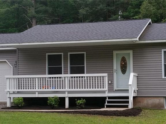 Amazing Ranch!! 1360 Sq feet on first floor...but double that when you add the finished basement! 4 STALL GARAGE, 2.98 ACRES! 3 bedrooms, 2 full baths. Open floor plan with cathedral ceilings. Only 8 years old, well insulated, first floor laundry. Large kitchen with plenty of cupboard space and a very large island/breakfast bar. Sliders from kitchen overlook your beautiful back yard. Master bedroom with full master bath and large closet. Finished basement is amazing with a family room area, rec room area, office area, roughed n full bath, and storage room with shelving as well! Central air to top off all of the extras here! Extra wide driveway, and large yard with wooded area as well. Come see for yourself! TAXES SHOWN WITHOUT EXEMPTIONS.