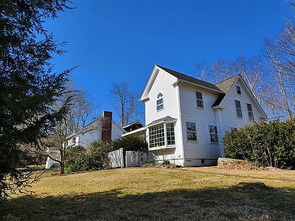 A unique blend of old and new can be found in this expansive antique cape. Renovated in the early 90s.The house includes three bedrooms, 2 full baths, living and dining rooms and a nice library. A large country kitchen features twin bay windows and a bright sunny eating area.The attached barn could be used for additional living area, in home office or possibly as a perfect inlaw. Formerly used as a full veterinary clinic, with five rooms including surgery, exam room, kennel room, grooming area and more.This area was once a big open space. Screened porch and fenced brick patio are are all on a large 1.4 acre level landscaped lot with pond and stream frontage, plus a two story detached barn. Located on a quiet country road. Zoning allows, with Special Permit, doctors office, veterinary clinic or kennel and other home occupations. Come see if this might be a perfect fit for you. Seller is motivated to move!