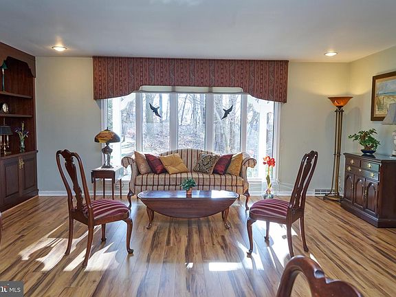 Solebury Estates -a secluded home located on a cul-de-sac atop Solebury Mountain and surrounded by nature at every view. This three bedroom, three bath split level has a large living/dining area with new floors, leading to a vaulted kitchen/breakfast room , tile floor and three walls of windows leading to an expansive flagstone patio. The lower level is tiled with a gas brick fireplace, a full bath, and sliding door to the front flagstone patio. The upper level has two bedrooms, one with new floors and a private balcony, and a full Jack and Jill bath shared by both. At the far end of the house with a private stairway is the master bedroom and bath, new floors and a balcony looking into the woods. The bedroom configuration easily lends itself to the creation of two master suites. The two car garage with direct access tops off this large split ready for your personal touches.