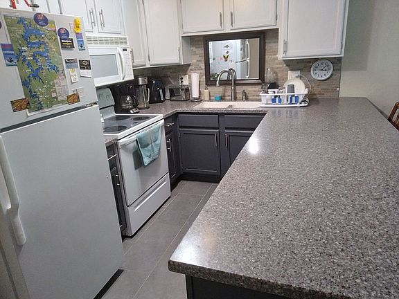 UNIT IS LOCATED RIGHT AT THE WATERS EDGE! Walk off your private deck onto the sidewalk...Easy access to the Boat slip and short walk to the beautiful POINT swimming pool! Newer appliances and updated in 2018 to include European Hardware on cabinets, hard surface countertop in kitchen, flooring, fixtures, vanities. Great complex with gated entry, trailer parking, tennis court, playground, boat ramp, HUGE outdoor swimming pool on point location (what a view!), Club House with indoor swimming pool and more! Great complex for vacation rental too! --