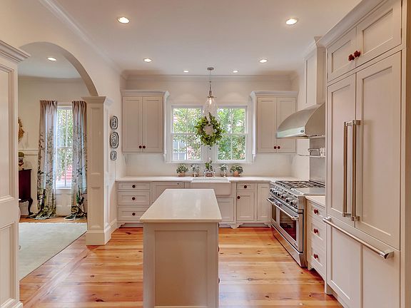 Better Than New Elegantly Renovated Southern Farmhouse Style Reminiscent of a South of Broad Home but No Flood Insurance Required. Handsome 4.052 Sq Ft with 5 Bedrooms, 4 1/2 Baths, Plus Garage and Guest Quarters on a Corner Lot Surrounded by Walled English Parterre Garden, Mature Crepe Myrtles, Live Oak, and Authentic Charleston Brick and Tabby Courtyard. Entirely Renovated by Outstanding Architect and Interior Designer with High End Materials and an Eye for Detail. All Systems are New. Wrap Around Porch Leads to Open Floor Plan with Heavy Trim and Moldings. Arched Openings Bring One Through Living Room with Fireplace, Paneled Dining Room and New Kitchen Which Boasts Commercial Stainless DCS Stove with Hood and Ovens. Antique Reclaimed Pine Floors with Soaring 10 Foot High Ceilings. A Magnificent Brick Archway Opens from Kitchen into a Spectacular Brick Floored, Ship Lapped, and Wooden Beamed Breakfast/Family/Sun Room with Four Sets of of Double French Doors Overlooking Walled Courtyard. Connected to the Chef's Kitchen is the Prep Bar with Custom Sink, Refrigerator Drawers, Wine Cooler, and Fitted Pantry Which Nicely Connects up a Half Flight of Stairs to the Grand Media Room. This Level Has a Guest Quarters with Large Bedroom and Full Bath with it's Own Exterior Door to an Outside Staircase Making it Private for Guests or an Income Producing Unit. There is a Limestone Parking Area for 2 Cars Plus a 1 Car Garage with Utility Sink, Automatic Door, and Room for Large Workbench. The Master Bedroom and Luxury Bath are on the Second Level as well as 2 Additional Bedrooms and Bath . A Book Cased, Separate Office with Dormers on the Third Floor Lays Across from a Fifth Bedroom with a Seating Area and En Suite Bathroom. This Home has Plenty of Storage with Many Closets, an Air Conditioned Attic, and Large Tiled Laundry Room with Craft, Sewing, or Artist Studio Area. Generous Public Gathering Areas Compliment the Private Spaces and Renders This Design Very Versatile with a Downtown Charleston Feel. This Special Home Sits in the Village of I'On Enjoying all the Convenience that Mt. Pleasant Offers. Walk to Shops, Spa, Restaurants, and Neighborhood Amenities of Tennis, Pool, Clubhouse, Parks, Lakes and Boat Landing. All Within a 7 Minute Drive of Downtown Charleston and Area Beaches.