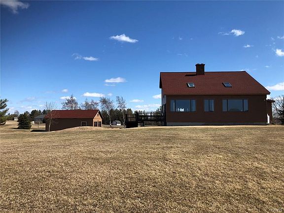 Waterfront home on 7.1 Acres and 326 Ft on the St. Lawrence River. new flooring, appliances, plumbing, heating system, hot water tank, well pump & pressure tank, shingled roof, blacktop driveway & more! Open floor plan with kitchen, dining room and great room featuring cathedral ceiling and all offering a stunning view of the river. The generous size kitchen has a breakfast bar with seating for 4, new appliances, a large pantry.BR on first floor could be used as a master as it has direct access to the updated full bath and laundry area. Side entrance to the house has small mudroom area with storage. The second floor 2 additional bedrooms with a jack and Jill bathroom. mechanical./storage room and another finished room w/ its own entrance. 2 stall detached(30X24) garage & storage shed