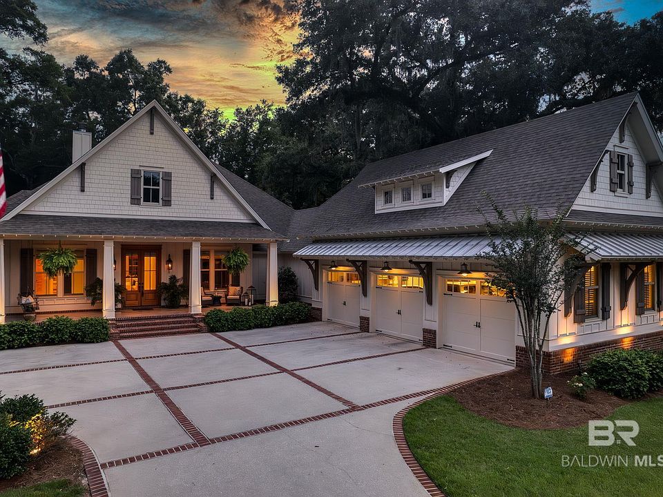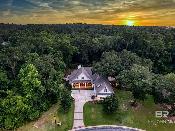 Luxury, Jaw Dropping, Custom One-Owner Home, rocking chair front porch, 10.5 ft mahogany Fresch doors, 3 en suite bedrooms, 3.5 Bathrooms, office, 1000 sq ft floored attic, 3-car garage, level .67-acre lot backing up to woods. 10’-12’ ceilings, refinished heart pine flooring in ‘23, soft-close custom cabinetry, crown molding, 8 ft solid 5-panel knotty alder doors, 3cm Alabama white marble in the kitchen and primary, Carrera marble in additional bathrooms. Gourmet kitchen with top-of-the-line KitchenAid appliances: 6-burner gas range, commercial hood vent, built-in oven, microwave, Frigidaire Professional refrigerator/freezer, gorgeous backsplash, spice rack, pull-out trash can, and walk-in pantry. Custom wet bar with wine cooler & refrigerator drawers. Living area boasts a gorgeous mantel, wood-burning fireplace with gas lighter. Primary suite includes a built-in custom closet, whirlpool jetted tub, marble shower, glass doors, separate vanities, built-in window seat, ceiling reading lights, and views of the wooded backyard. Split open floor plan provides 2 additional beds and baths, custom built drop zone, oversized laundry room, stair access to fully decked 1000 sq ft attic withspray foam insulation, 3-car garage includes coded storage room, Swisstrax flooring and workshop area. The screened porch has a wood-burning fireplace, upgraded landscaping, a pergola with stone pavers, granite and stone built-in gas grill, well water with Rainbird irrigation system to water Zoysia grass, invisible pet fence, 6 ft privacy fence, and 12x16 shed matching the house with electricity. Additional Amenities include eave lighting, gutters with guards, an extra parking pad behind the fence. LOCATION! Conveniently located 15 minutes to Mobile, 2 minutes to a boat launch, close to shopping, restaurants, grocery stores, Blakeley State Park, I-10, PLUS across the street from Spanish Fort Park with future water access. Schedule a showing before it’s too lat Buyer to verify all informatio