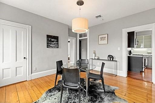 You'll fall for this gorgeous top floor 2-3 bed flat, fully renovated in 2011 and reminiscent of Parisian interiors, on a corner lot along the Cambridge line, only one block to 1369 Coffee house and restaurants in Inman square. Located on a corner lot, this unit is filled with sunlight throughout the day. High ceilings, generous rooms, gallery hallway, doors with transom windows and gleaming pine floors give character & style to a very cheerful home. Front living room has wide front westerly bay windows & fireplace mantel. Formal dining room with closet is flex to be used as a 3rd bedroom. The large eat-in kitchen has espresso + glass front cabinets, apron sink, stainless steel appliances & white countertops. Rear bedroom catches sight of the Boston skyline. Bathroom has deep vanity and subway tiles. Central air. Exclusive roof rights for possible skylight/roof deck. Private storage. One tandem parking. Walk to Central, Kendall Square and 0.5 mile to the upcoming Green line.