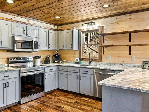 LAKE BLUE RIDGE ACCESS - This Remarkable New Construction home features high-end finishes, open concept design, the option of main-level living, a lake view, a nice level lot and so much more! Complete with 3 bedrooms and 3 baths, this mountain retreat never fails to feel inviting and cozy. With its high ceilings, large windows, and majestic stone fireplace, the great room creates an idyllic space for watching TV, unwinding, and spending time with friends and family. The well-equipped kitchen boasts granite countertops, hardwood flooring, custom wood cabinetry, stainless steel appliances, and an island that comfortably seats several for casual dining. A more formal dining area connects the kitchen and living room, with access to the expansive deck for indoor-outdoor living at its finest. The primary suite features a balcony, walk-in closet, and an ensuite with double sinks and a large tile shower ready for pampering. The Terrace level you will discover a large living area, perfect for entertaining complete with wood flooring, additional spacious bedroom and bathroom, the terrace level will lead you out to find a custom shower and hot tub area where you can take in those crisp mountain air nights. Enjoy all the shopping, dining, and cultural offerings of Blue Ridge can be experienced within minutes, and a one-hour and forty-five minute drive will have you flying in and out of Atlanta. This inviting, well designed and constructed home won't be available for long!