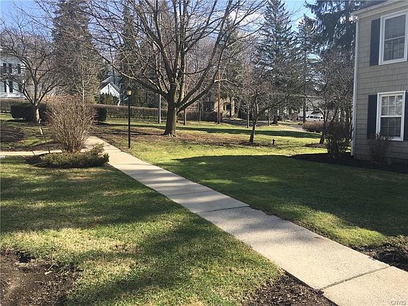Conveniently located single floor village condo features newly refinished hardwood floors throughout, open living/dining area, 2 bedrooms with large closets, galley kitchen and full bathroom. Walk out level to beautiful courtyard area and sidewalks to village. Owner shared laundry in basement, as well as additional large storage room. 1 assigned parking space as well as additional visitor parking.