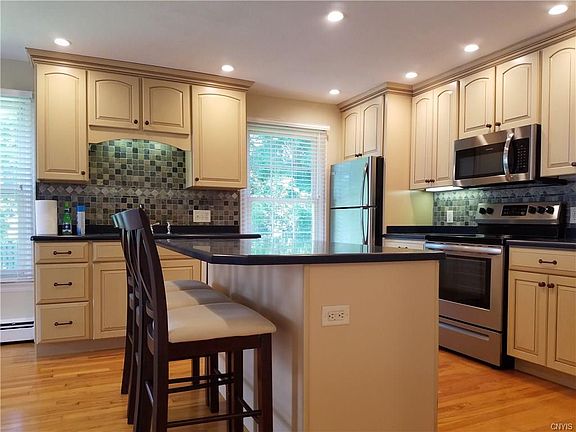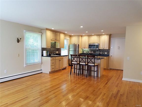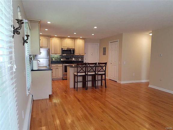 Don't miss out on this village one floor 2 bedroom apartment! Renovated with open floor layout, island seating, shutter blinds and hardwoods throughout, SS appliances and closet stacked laundry. Unfurnished. Minimal utility cost village electric and cable tv/internet. Designated outdoor parking for one. Building 2 Apartment A situated for tranquil views and privacy. Sorry no canine pets (others by landlord approval)
