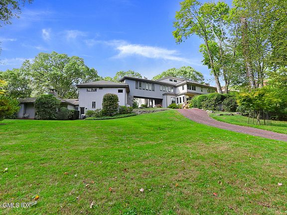 Opportunity to acquire an exceptional 6.5 acre Greenwich country compound set amongst very high-end homes in a private, gated association. There are stunning vistas & a bucolic setting w/manicured & mature plantings plus expansive lawns for horses. Amenities include pool & spa, pool house, tennis & basketball courts, spaces for vegetable & flower gardens, carriage house or art studio & office. Masterful blend of timeless architecture with well sited windows that seamlessly integrate the natural landscape. This 9200 square foot home offers high ceilings & spacious formal & informal rooms, which accommodate both intimate family gatherings & grand parties. Enter into a double height grand foyer w/curved metal railed staircase & see marble & wood floors, great wall space for displaying art. First floor offers a large living room with floor to ceiling stone fireplace & a greenhouse area for enjoying the view and sun, formal dining room, first floor primary suite with adjacent office, spacious dine-in gourmet kitchen, family room with fireplace & access to different outdoor patios and decks. The second floor offers another luxe primary suite, several bedrooms & a great bonus room with beamed ceiling for office or game space. Bonus: koi pond with waterfall, vegetable garden area, office spaces, 5 garages & generator. Conveniently located & minutes to schools and shops. Easy drive to downtown Greenwich, highways & train.