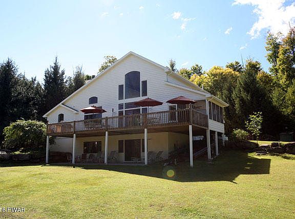 Stunning contemporary with lake rights to a 200-acre motorboat lake in gated community-The Woods at Duck Harbor. This home has wonderful curb appeal and is nicely set back from the road. Once you step inside, the open floor plan, vaulted ceiling and abundant natural light make this home very welcoming. The master suite is located on the main level with a spacious bath, walk-in closet and private deck. French doors lead to a beautiful screened sunporch off the dining room area, plus there is an expansive wrap-around deck. A large open kitchen with bar seating adjoins the living room complete with fireplace. This home is great for lots of family and entertaining. Off the kitchen is 1/2 bath, laundry area and mudroom leading to the large attached garage. Upstairs is a large loft/den with t