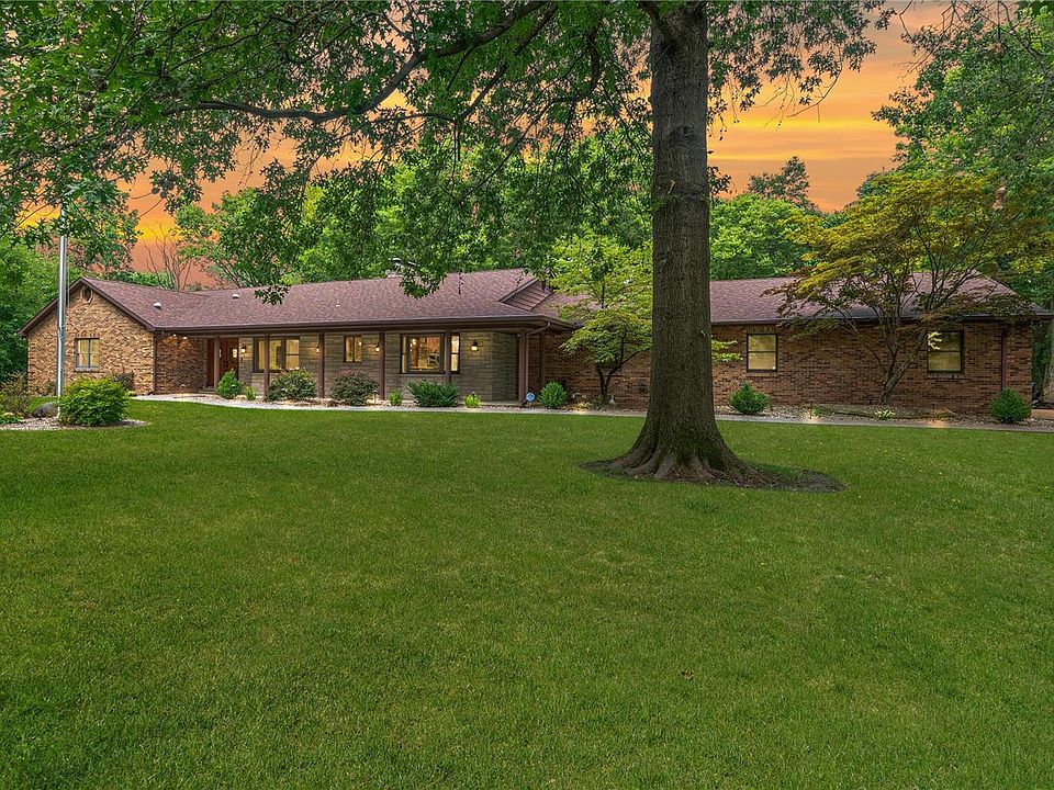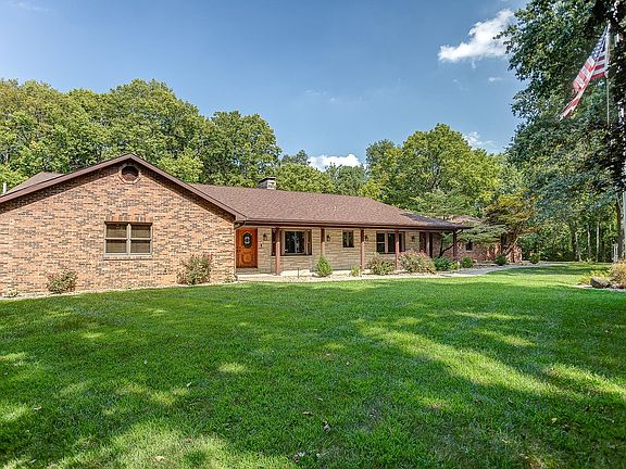 Your Oasis at home awaits! This privacy of this home & amenities it offers is sure to be appreciated, while still enjoying the convenient location. The 4300+ sq ft, 6 beds, 3.5 bath ranch home is situated on 14+ acres w/private gated access, woods w/walking (or ATV) trails & 2 heated garages & Tesla charging station. Home has many updates/upgrades: flooring, two-sided fireplace creating space for multiple living areas, whole house generator & a kitchen to make a chef jealous with envy. Spacious bedrooms w/split bedroom layout. Outside is sure to delight w/an in-ground salt water pool w/waterfall & fountains, gas fire pit, grilling area, play set & gazebo overlooking the lake. There is also a 1/2 bath located in the screened in patio for pool guest convenience. Buyer to verify all data as derived from various sources. Audio/Visual equipment is present on property.*Seller offering $5000 allowance/closing costs towards repainting of the kitchen cabinets after closing if buyer chooses. Additional Rooms: Mud Room