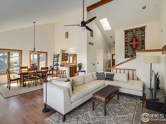 Gorgeous mountain retreat with stunning views overlooking the foothills and the sparkling lights of Boulder valley. 43 Sunrise Lane sits on 1.5 quiet wooded acres where you can enjoy all the perks of mountain living while being just 10 minutes from N Broadway shops & restaurants. Open floor plan, fireplace, vaulted ceilings, sunny rooms and large outdoor deck are an invitation to entertain. Updated Kitchen & baths. Work from home with consistent high speed internet, and reliable home deliveries. Take in the sunrise every morning, and the sunset each evening from the upper deck hot-tub. Very generous Primary Bedroom is en-suite with new soaking tub. Two lower-level bedrooms share a full bath and outdoor deck area. Oversized 2 car garage with sink, a generator, plenty of room for a workshop, with new 30 amp & 60 amp electrical lines, ready for your ev-charger. Fully fenced back yard with terraced staircase leading to a stone meditation bench; easy access to hiking and biking trails from your front door; short drive to cross country skiing at Brainard Lake in the winter and to outdoor music in Gold Hill and Jamestown in the summer. Wonderful mountain community listserv that provides daily information and support, and hosts holiday gatherings