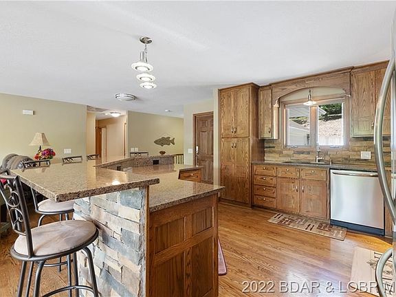 This beautiful lake front home on the 24mm is a showstopper. With 5 bedrooms, 3 bathrooms and over 3400 sqft., this home is perfect for hosting family get togethers and entertaining friends. The basement is already equipped with a full size bar for you to mix up your favorite drinks to enjoy lake-side. An industrial look downstairs with metal ceilings, woods beams and colored concrete floors throughout. A great location by land or water with Paradise restaurant and bar just around the corner. located in a no-wake cove perfect for swimming or paddle boarding. The home has an oversized 3 car garage, great for storing all your toys. Two of the bedrooms are non-conforming rooms. Lets get you living the lake life, just in time for Summer!