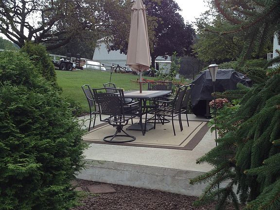 Great Country Setting with a very nice view. Open floor plan in living room, dining room and kitchen with a beautiful fall stone wall with a fireplace, step down living room . Finished basement with a bar, pool table and wood stove. Very cozy home. 2 car Garage with an additional detached 2 car garage. Bring your animals with a barn and fenced in pasture. Low taxes at $4,593. All this on 2.8 Acres. Included in this price is also adjoined deeded seperate lot/land of 3.8 acres. Taxes $1715. Price includes house, garages, barn and all on almost 7 acres.