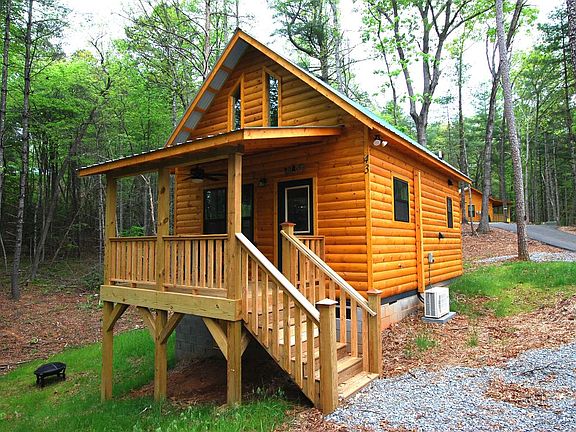Priced Reduced to Move ! Brand New Furnished Log Style Mountain Chalet. Only 396 sq feet, but packed with all the comforts and conveniences, Full size refrigerator, Range, Microwave, with Granite counter tops, fully stocked kitchen (plates, dishes, coffee maker, plus, all linens, towels in the cabin as well), The living room space has an electric fireplace appliance Plus an extra propane heater just in case it gets really cold. The cabin features an efficient Mini-split for normal HVAC & an on demand tankless HW heater in the Storage Loft. The BR holds a Queen & connects to the bathroom wShower & Laundry Center. Cabin has never been occupied. All furnishings are new and convey with the sale. (New Owner will be responsible for obtaining propane service & tank and to arrange w BRMEMC to connect the Fiber Optics Internet/TV services.