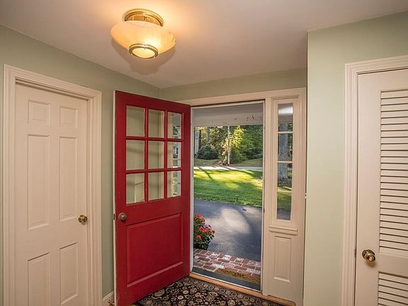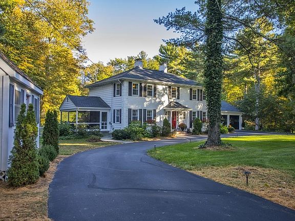 Stately Colonial Reveals a Relaxed Take on Glamour. A ride through the woods of Thayer Farm Road brings you to the circular driveway and into this private 11 room retreat set on 1.4 acres. Front to back LR with hardwood and brick fireplace opens to a 12X16 screen porch with ceramic tile and ceiling fan and to the formal dining room with hardwood and corner cabinet. Sellers have updated many features of this home to integrate modern values and convenience with style and elegance. The kitchen has an added wall of windows, custom cabinets, center island, second oven, ceramic tile floor, granite and Anderson sliding door to approx. 1000 sf composite two level deck w/ pool. Relax in the soothing FR with angled gas fireplace and builtins. The 1/2 bath is newly stylized. The center stairway with sumptuous open foyer is another star of this home. Upstairs are 4 large bedrooms and two baths. The master bathroom has custom glass shower, whirlpool tub, double vanities. So much more....
