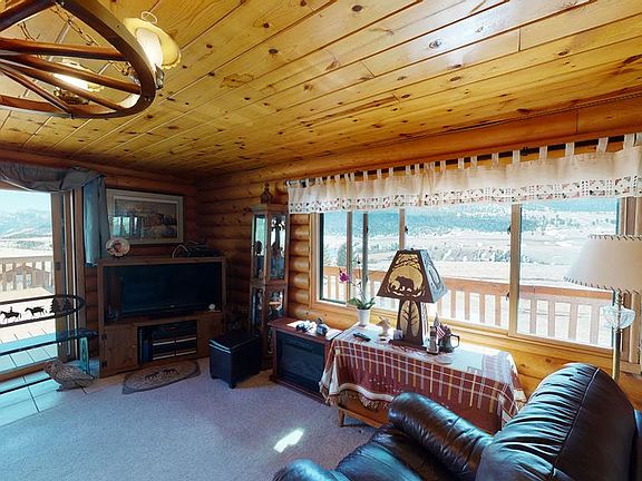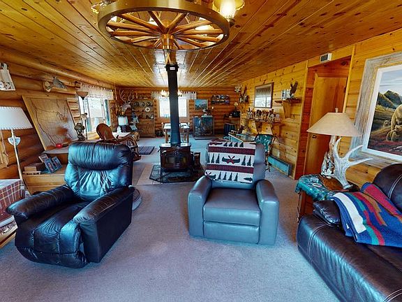 Mountain views and wildlife abound! Enjoy mountain living in this rustic & charming 3 bed/2 bath log cabin on 5 acres in Sunlight Basin features many upgrades including new windows and new hot water boiler. Mature trees and landscape provide habitat for many birds and deer and the wrap around deck gives a view in every direction!