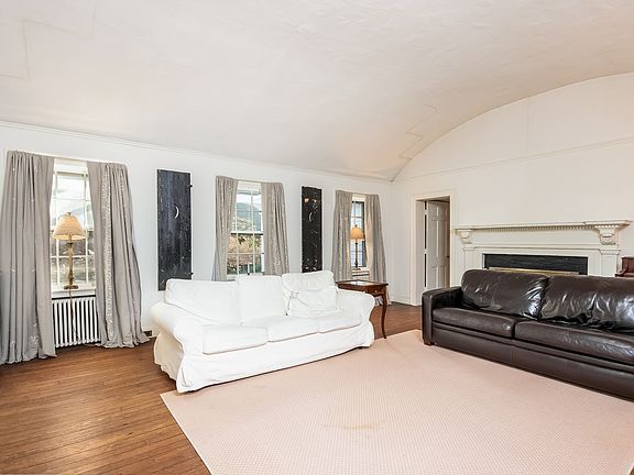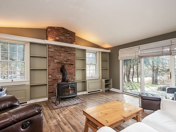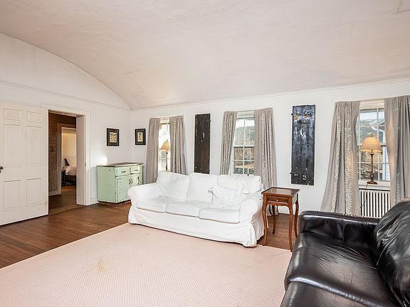 Fabulous Location ~ Private, Elevated 1.51 acre lot Surrounded by Stone Walls, Open Fields, and Pasture Land. One of the Most Picturesque Streets in Town. Early Charmer with Unique Features - Cozy Office, Living Room with Arched Ceiling and Fireplace, Antique Paneling in Formal Dining Room and Bright/Open Family Room with Wood Stove and Sliders out to Spacious Backyard - Beautiful Hardwood Floors. Plenty of Space Here with 4 Bedrooms, 3 Full Baths. Additional Sitting Room Currently Used as Bedroom would be Perfect for Office, Craft Room or Den! Detached 2 Car Barn/Garage. Part of this Home was Once a 1-Room School House!