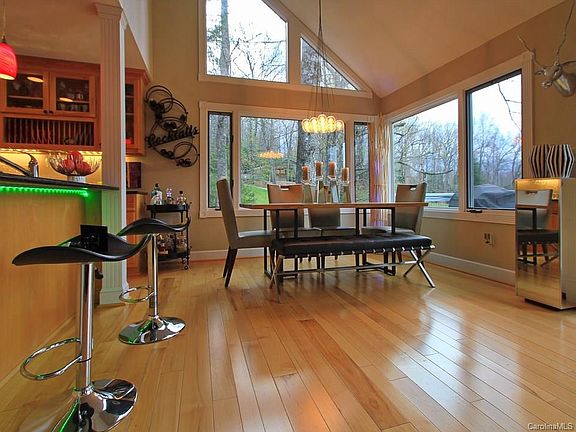 Elegant & meticulously designed corner townhome overlooking the scenic 18 fairway of Mt. Mitchell Golf Club. Premiere property totally gutted & upgraded w/year round easy access. Über modern kitchen has been expanded along w/vaulted ceiling dining room. Kitchen appliances only 3 yrs old. Lg double hung windows for spectacular views. 3 bedroom/3bath w/additional dressing room. Bdrms on each flr w/fully renovated elegant bthrms. Hardwood floors on upper & main levels & custom tile on lower level. Central HVAC w/gas fireplaces in living rm & downstairs bdrm. Custom lighting thru-out w/dimmers, handmade custom wrought iron staircase railings. Spacious elevated deck with spectacular views. Washer & dryer in walk-in laundry room w/storage cabinets. Furnishings negotiable.