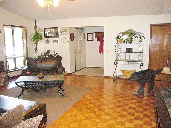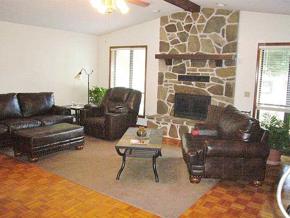 Quiet, level lot, paved driveway, this sparkling clean home has vaulted ceilings a natural stone wood burning fireplace & 2x6 exterior walls. Walk in closets and a sun room with cement patio behind it along with a 3 car attached garage 26' detached boat garage, garden area all in nice neighborhood.