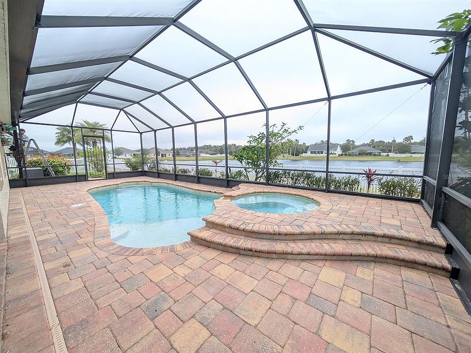 One or more photo(s) has been virtually staged. 2016 Maronda Renaissance Series concrete block home in quaint Eagle Lakes is MOVE IN READY. Your outdoor oasis awaits in a SPACIOUS OPEN FLOOR PLAN 4 BR/3 BTH/3 CAR GARAGE Home, loaded with features! The inviting curb appeal offers mature landscaping, flowering plants, annual producing pineapple plants, banana, pomegranate, butternut squash and wild grape tomato vines. An oversized parking pad(with room for 6-9 vehicles) and stacked stone accents surrounding a front covered porch. The 3 car garage comes with a Mini-split air conditioning system with remote, garage door remotes, keypad garage entry, ceiling rack storage, pulley system storage and peg boards. Once inside, you notice the Plantation Shutters throughout the home as you walk through the Foyer, Great Room, Dining Room, Kitchen w/Nook floor plan. The office/flex room features French doors for privacy. This 3-way split plan offers privacy for a larger family or guests. An en-suite secondary bedroom in the front of the home and 2 secondary bedrooms with guest bath in the rear of the home are conveniently located to optimize everyone's needs. 9 ft Tray ceilings, Crown molding, rounded corners, granite, stainless steel appliances include cooktop, range hood, refrigerator, double built-in oven, microwave and dishwasher, counter height oversized island, reverse osmosis water purification system, water softener and tile set the stage for the large kitchen and OPEN GREAT ROOM. Behind the GREAT ROOM lies the HUGE Master Suite which features a Master Bath with an Enormous Shower with dual Shower Heads, built-in garden bath, dual sinks and vanity area, a water closet AND a LARGE Walk-in CLOSET. 4 Glass Sliders open to the rear covered screened porch which leads into the expanded paver patio featuring a screened heated saltwater pool and spa. The patio opens to the backyard with a gate that opens to the lake. The backyard is FULLY FENCED with convenient side yard gates. Your dream home awaits as it offers the ideal blend of space, comfort and natural beauty. This home provides the perfect setting for relaxation and family life. All will love the peaceful setting and small neighborhood, but yet convenient location with 10 min access to beautiful Flagler Beach via Scenic Loop or HWY 100. Families will appreciate the spacious layout and proximity to great schools. With two easy access points to I-95, you're also close to both St. Augustine and Daytona Beach for work or play. Don't miss out VIEW NOW