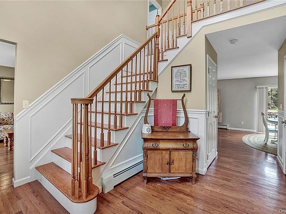 There's no place like this home! Beautiful custom kitchen features granite counters and island, recessed lighting and ample storage with spacious eat-in-kitchen area & slider to deck! Formal living and dining rooms! Hardwood floors throughout entire house (except bathrooms)! First floor laundry room. Surround sound speakers included! *BONUS ROOM* over garage with private staircase and storage! Master Suite w/high ceilings & fully bathroom w/jetted tub & stall shower. An Entertainer's Backyard: Oversized Trex deck with vinyl railings & electric awning overlooks the in-ground pool & spacious patio big enough for all your guests to gather! Over 2 acres of level grounds, playground, driveway re-sealed, manicured landscaping & solar panels to offset the bills! Cozy, covered rocking chair front porch. Unfinished walkout basement, water softener. Washingtonville Schools! *SEE VIRTUAL TOUR*