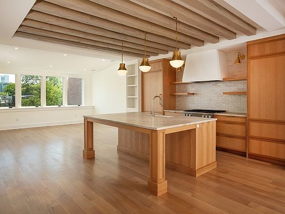 43 Union Park, Penthouse, South End is a brand new, 1,962 SF, 3 bed, 2.5 bath penthouse duplex with two private outdoor spaces, high-end fixtures and finishes, wine bar and South End / Boston skyline views. Kitchen features rift sawn white oak cabinetry with shaker-style doors, taj mahal quartzite countertops, handmade tile backsplash, Waterworks fixtures and white oak flooring throughout. Master bath features honed statuario marble vanity with rift sawn white oak doors, Kallista fixtures and Eastern white marble wall and floor tile. Private roofdeck and balcony overlooking Union Park.