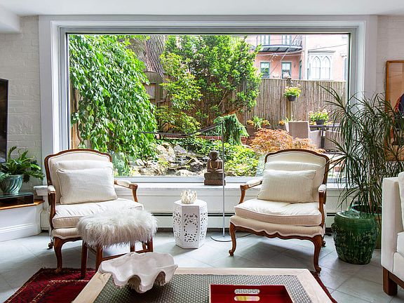 Located off Restaurant Row, this spacious, 1st & garden, ~1,900 SF duplex home features 2+ beds, 2+ baths with unique, outside garden space, waterfall. Master deed grants right to create pkg. space in this area. Upper floor entry has an under-the-stoop, small storage space, ideal for stroller. There's a primary bedroom (2 closets) with en suite bathroom (double vanity, large walk-in shower). Guest bed faces Upton St., with adjacent, full hall bathroom. A small, interior room, currently used as a home office, could easily be converted to a nursery. The lower level has a spacious, east-facing living room with a large, 10' X 5.5' picture window. This captures unique view of mature, lush garden with calming, stream-like water-feature, pond. Gas F/P. Adjacent to the kitchen, there's a separate dining room with an entire, curved wall of granite stone (c.1880) and chandelier. Kitchen has gas cooking, granite counters. Off the kitchen, is a room with1/2 bath, W/D, work bench. Ask agent re: pkg