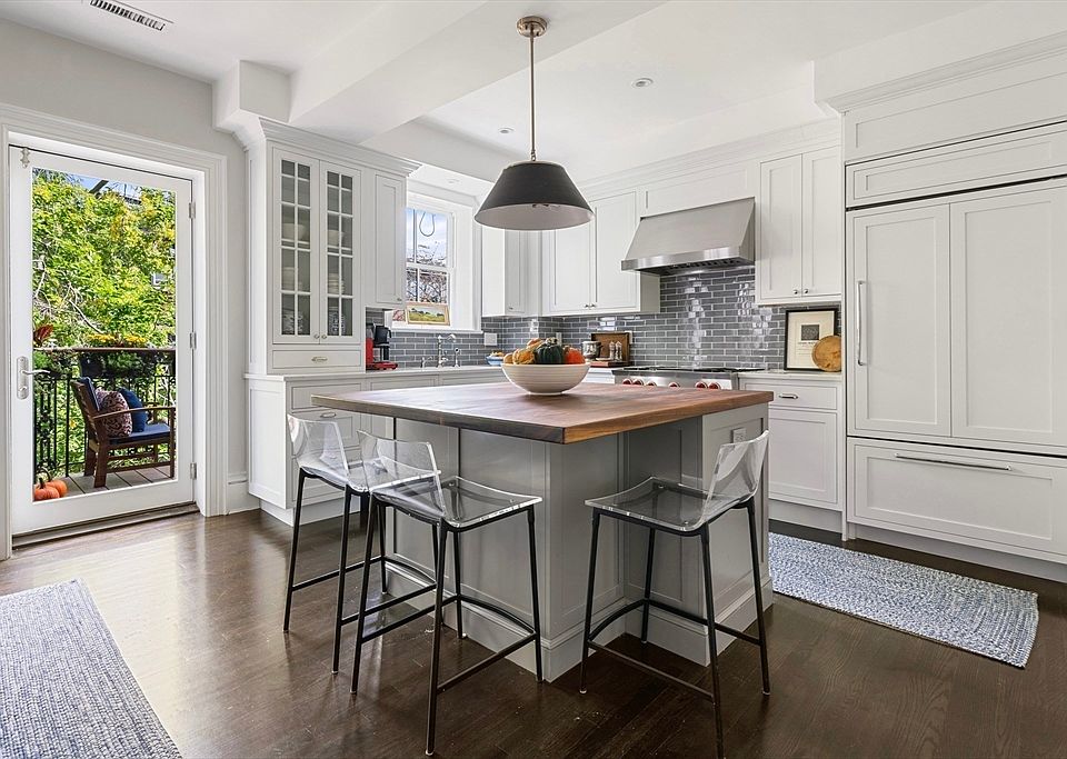 Tucked off vibrant Restaurant Row is this beautifully renovated ('23), warm and inviting 3+bed, 2.5 ba, 1,775 SF duplex PH home, where charm meets modern elegance. The heart of the home is the open-concept kitchen/dining area, highlighted by black walnut large island—perfect for gatherings/casual breakfasts.36 inch Bluestar range, SubZero fridge/bar fridge, Miele D/W, Wood-Mode cabs.Natural light floods the space, creating a cheerful ambiance that invites relaxation. Off the dining, a private terrace (Ipe wood) awaits, offering an ideal spot for gatherings. LR features bow-front windows, decorative FP, flanked by custom bookshelves/cabinets. Flexible "bonus" room sits next to this room.1/2 bath. Upper floor features tall ceilings, 3 beds: 2 large, one smaller. A bathroom/shower separates the larger beds.. W/D. Primary bed has a stylish, traditional en suite bath, separate tub/large shower, double vanity, custom molding, Carrara marble, radiant heated floor.