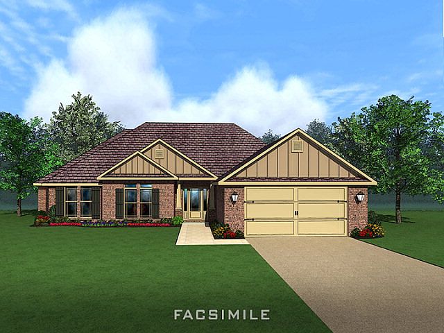 The Jayden. Large home site across from common area, fountain and gazebo. Breakfast bar overlooks huge great room with corner wood burning fireplace. 12x12 dining room can be converted into office or study. 10x9 Breakfast area large enough for family dining. Kitchen opens onto 17x7 covered porch. All stainless steel appliances and Granite Counter tops throughout. 10x10 open patio for grilling is included. Corner garden tub and separate shower in master. Tub includes custom spa faucet. Many extras including can lights in soffits, extended driveway, extra hose bibs, extra can lights, utility sink, beveled mirrors, under-cabinet lights. Enjoy fishing in community ponds, tennis and basketball. Quiet, country neighborhood 1/2 mile from Hwy 59, 2 miles from I-10, 5 1/2 miles from Hwy 181.