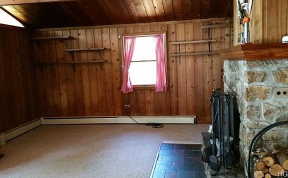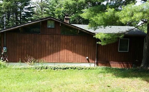 Nice 2 Bedroom Ranch sits on 4 SOLD 1/9/15! 2 Bedroom home tucked away on a private wooded setting of 4.8 Acres. Stone wood burning fireplace in living room with vaulted ceilings. Sliders lead to large wrap around deck. Newer roof installed 4-5 years ago. Large shed. Charming country home has loads of potential. Great for second home, just starting out, or downsizing. Come take a look!