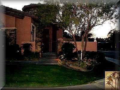 Rancho Mirage Model Home 3 bedroom, office, 3 & 1/2 bath, 2,803 square feet. Upgrades throughout. Pebble Tec pool and spa. Built in BBQ, 3 car garage attached, 10' ceilings, fire place, small butler pantry, nice corner home next to exit only gate, mountain views. Living room, dining room, family room, office-library.