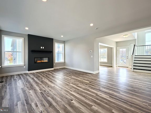 This beautiful home features a welcoming front porch, stylish exterior, and a 2-car garage. The garage opens to a mudroom complete with a large pantry, powder room, and a built-in bench. The first floor boasts durable vinyl plank flooring and 9’ ceilings. To the front of the home is a flex room that can be used as a study, living room, or other versatile space. The kitchen is well-appointed with quartz countertops, a tile backsplash, and enhanced cabinetry and appliances. Adjacent to the kitchen is a sunny dining area with access to the rear composite deck and a comfortable family room warmed by a cozy fireplace. The 2nd floor owner’s suite features an expansive closet and a private bathroom with a tile shower and double bowl vanity. Also on the 2nd floor are 3 additional bedrooms, a full bathroom, and a convenient laundry room. The basement is partially finished with a kitchenette, tv area, recreation area, and bathroom. Sliding glass doors open to a patio.