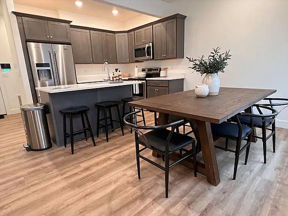 The space A two-story townhouse with bedrooms, full bathrooms, and loft area on the second level. Kitchen, dining, and main living area are on the first floor. Large screen TVs in the loft, master, and queen bedrooms. Brand new (2021) and ready to rent and fully furnished. Comfortable, and stylish. Kitchen has full amenities, dishwasher, microwave, stove, and large fridge. Dining table and six chairs with bar stools as well.