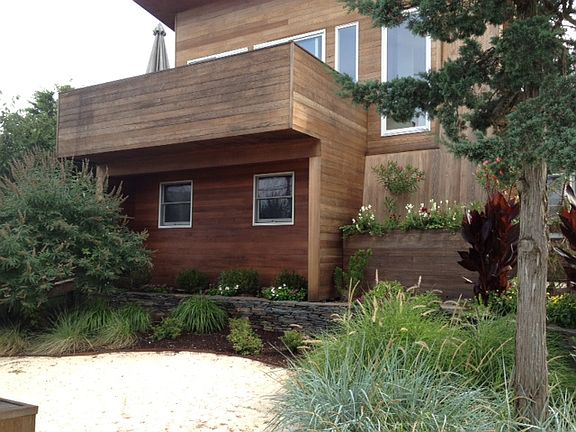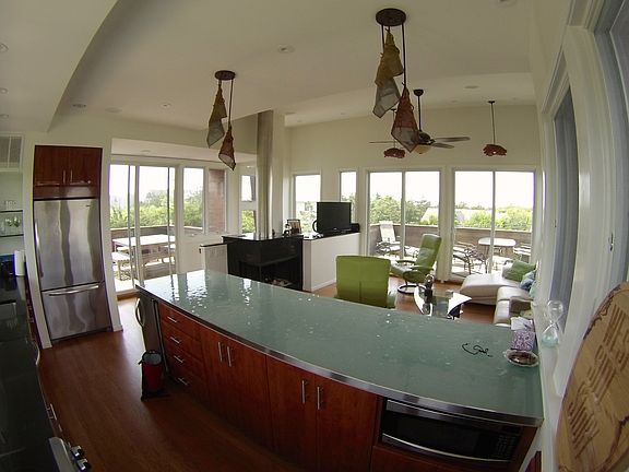 3 bedroom, 2 bath modern home just steps from the Atlantic Ocean. Elevated and unaffected by Hurricane Sandy. Multiple outdoor deck areas with clear cedar siding and mahogany decking. Roof deck provides panoramic views of the island, including the Atlantic Ocean, Fire Island National Seashore, Fire Island Lighthouse and Great South Bay. Fireplace, central heat and air conditioning. Master bathroom with attached outdoor shower.