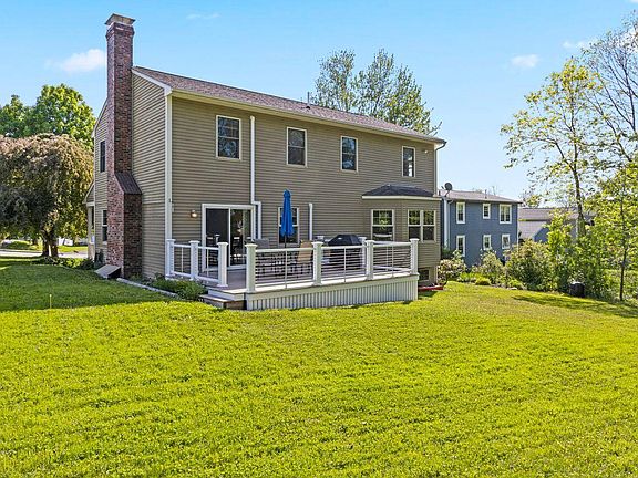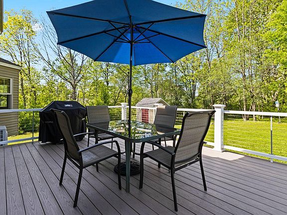 appliances, warm oak cabinetry, and a large side pantry! Relax in the casual dining area set in a large bay window design offering views of the lovely backyard beyond. Cozy up in the family room with a crackling fire in the fireplace while watching a great movie or step out to the newly completed sundeck with vinyl and cable railings and composite decking! This outdoor space is sure to please many during an outdoor barbecue with lawn games and more!