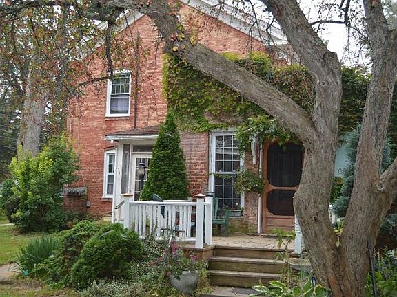 This home is centrally located in the village with easy access to the driveway for business or tenants. New Windows in the last two years, 2 Car garage with storage space above. The federal brick building is steeped in history as it was the Kirby Farm house at the turn of the 1900's. It has housed several Bainbridge families since then and has a striking and charming appeal as one of the prominent older houses in Bainbridge. The living quarters within the apartments are very comfortable with lots of natural light and one of the units has a Koi pond with a waterfall. The house is now set up with three apartment units/office that all have their own private entrances, and individual heating furnaces and electricity. Easy to maintain. Tenants pay their own utilities. Washer and dryer hookups in all units. The yard is small enough to maintain but has a nice aesthetic appeal.
