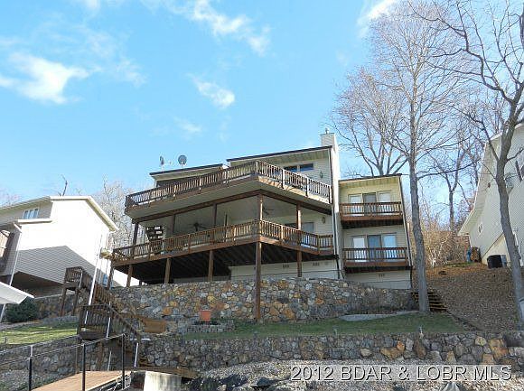 WOW, what an impressive 3-bedroom, 3-bath lakefront home! Enjoy the view for miles & miles. Cathedral ceilings, 3 season porch, large open decks. 2 level living, main level has open kitchen, dining and living with a master suite. Lower level has family room and guest bedrooms. Beautifully decorated with hardwood floors, granite counter tops, custom built cabinets, and oak interior doors. Ceiling fans in all bedrooms, living room & family room, 2 propane fireplaces, 2 propane furnaces. Large 2 Well Dock with 8000 lb lift, wave runner lift, large swim area & large natural rock wall. Brokered And Advertised By: Reece & Nichols at the Lake, LLC Listing Agent: DIANA SUTHERLAND