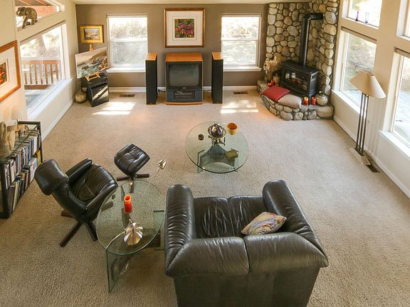 Unique Mammoth floor plan and setting. Downstairs living room/great room with dramatic south facing dining area and kitchen. Upstairs are 4 bedrooms, 2 baths, and laundry. 3/4 bath on living level. Spectacular mountain views from almost every window. Located at the entry to The Trails subdivisions adjacent to open space and across the street from the College complex open space. The great room spills in to a lovely south facing backyard with an extensive stone patio and lawn areaand all surrounded by native trees and shrubs. Kitchen features extra floor-to-ceiling cabinet storage and walk-in pantry/porch. Three extra closet on ground floor. Forced air gas heat, gas fireplace and gas cooktop. Fabulous efficiency for either permanent or second home living. Sold unfurnished but all appliances and washer/dryer stay. 2-car garage and large driveway. The property is in immaculate condition. Check out the video tour.