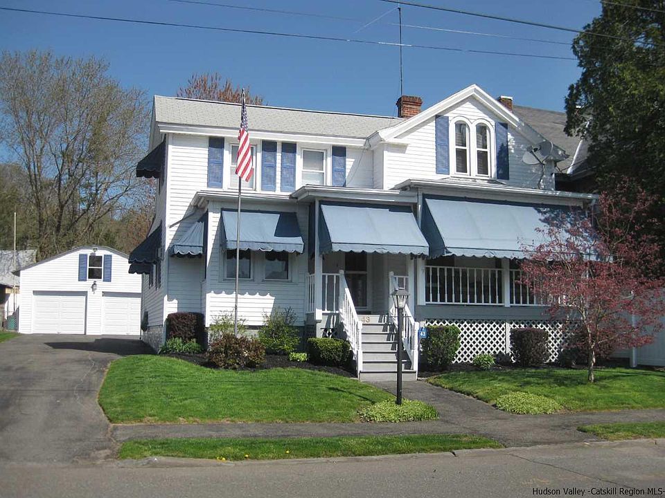 Remember the old neighborhood? where neighbors looked out for each other and children played hide & seek and caught lightening bugs in jars on a warm summer evening? Look no further this 3 bedroom 1 bath charmer is what you have been waiting for. Beautiful newer kitchen with large island and stainless steel appliances. Hardwood floors upstairs and downstairs with floor to ceiling windows in the living room. This home is centrally located less than a mile from Kingston Point beach and the Rondout waterfront. This home has been lovingly cared for throughout the years. Nice sun room off of the kitchen with newer hot tub to sit and relax after a long days work. The entire back yard is fenced in for your furry friends with a 2 car 22x22 detached garage. There are so many possibilities to this home it is a must see!