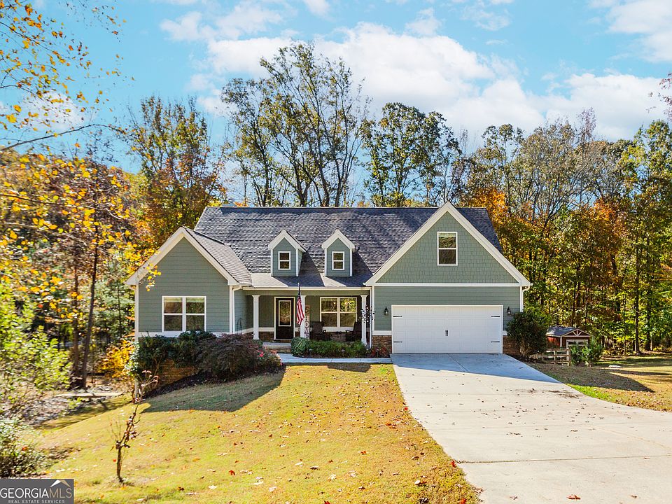 Discover 43 Water Lilly Way, nestled in the charming Falls of Stockton Farm neighborhood (with estate sized lots and no HOA). This ranch home with a finished basement, nestled on 2 acres alongside a tranquil creek, offers endless possibilities for enjoyment and cherished memories. Highlights: *Welcoming covered front porch *Spacious entry foyer with separate dining room to the right *Inviting family room featuring a vaulted ceiling with custom wood shelves flanking the cozy wood-burning stone fireplace *Open concept layout connecting the large breakfast room and kitchen, complete with granite countertops, a stone backsplash, stainless steel appliances, pantry and cabinets equipped with pull-out shelves *Master ensuite on the main level showcasing a trey ceiling, double vanity, tile shower, and a generous closet with custom shelving *Two additional bedrooms on main *Fourth bedroom and full bath located upstairs as a bonus *Partially finished basement boasting an impressive family room, wet bar, game area, fifth bedroom, full bath, workshop, and storage space *LVP Flooring & Blinds throughout & Two water heaters. The outdoor space is equally impressive! *Extended back deck and a screened porch with a swing overlooking the serene yard with hardwood trees *Hot tub, fire pit area, swing set, and storage building *Additionally you'll find a creek, irrigation system, landscape lighting, and split rail fencing The owners have made numerous improvements, ensuring this home is truly comfortable and move-in ready. You can't beat the location, situated in the highly sought-after Jackson County, with new schools, local dining and shopping, and just 10 minutes from I-85.
