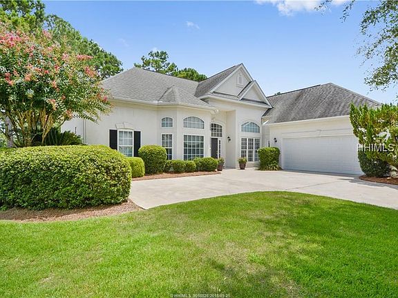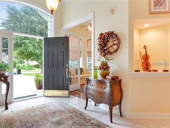 Location! Location! Location! This gracious Southport model home has panoramic views of the Arnold Palmer Signature golf course that's nestled along the Colleton River marshes. Lots of natural light! Transom windows, dramatic 12' ceilings, hardwood floors in study, DR, LR, FR, Master Bdrm & newer carpet in guest bdrms. En suite baths in all bedrooms plus a powder room. Big Kitchen w/tile floors, granite counters, & bay window breakfast area. Glass French doors to study. Enjoy a large screened lanai with access from the living room & family room. Spacious brick patio. Garage has epoxy floor finish & pull-down stairs to attic. Newer HVAC & HWH.