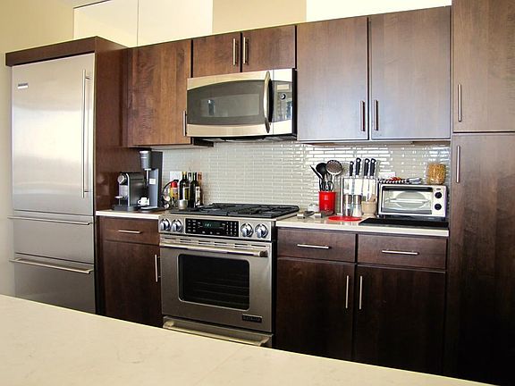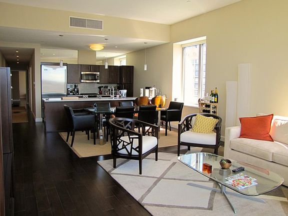 Stunning, luxury condominium available at Symphony Court. Spacious open-concept living room framed by large windows with fantastic natural sunlight throughout the day. Designer kitchen outfitted with stainless Jenn-Air appliances, gas cooking, and large breakfast bar overlooking the living room. Large master suite with walk-in closet and full en suite bathroom with double vanity and high-end finishes. Large additional bedroom and full bathroom perfect for guests. High ceilings and beautiful hardwoods throughout give an elegant and sophisticated feel. Concierge on-site 7 days a week 9a-9p, clubroom with kitchenette, common outdoor space, and direct-access garage with 2 parking spaces (lift system) included in rent. No undergraduate students considered. Pets considered on a case-by-case basis - $50/pet/month additional with a maximum of two pets.