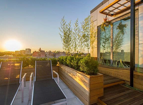 1st Penthouse resale at Symphony Court. This magical 2 bed, 2 bath home has an amazing direct access private rooftop terrace that's been designed by a notable landscape architect. Floor to ceiling windows and south facing, this unit is flooded with natural light and has spectacular sunsets. The master bedroom has a walk in closet and access to an oversized bathroom with an oversized walk in shower. The guest bedroom is also generously sized and has ample storage. Open concept living at its finest, the kitchen is outfitted with custom stained kitchen cabinetry, high end appliances and stone counter tops and seating island. This home has been outfitted with custom builtins, hardwood flooring throughout, in unit laundry, extra storage, and (2) car parking in the building. A phenomenal city oasis that's not to be missed!