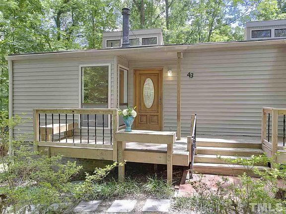 This home has it all: prime location, affordability and iconic design. 3 bed, 1.5 bath home, 1208 sq. ft., flooded with light. Vaulted ceilings with smooth easy flow between spaces in this open-living design. Private deck overlooking a peaceful .5 ac wooded lot. Easy, 15 minutes commute to UNC, Chapel Hill, and Carrboro; Twin Lakes Golf Course and shopping close by . Built in 1973, the mostly original systems can be updated to meet the new owner's exact needs and desires. New roof 5 years ago.Sold AS IS.