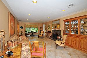 Stately Center Hall Colonial with gracious entry welcomes you into this masterfully designed home with fine, exotic wood and architectural details throughout. Striking banquet sized Formal Dining Room leads into a state of the art eat in Kitchen with radiant floor heating  #38. pantry...The Living room w/fireplace is a grand size  #38. brings you into a bright Family Room/Den w/fireplace  #38. skylight. The rear entertainment patio is easily accessed to from Kitchen, Dining Room  #38. Living Room. Master Suite has his and hers closets and Master Bathroom w/radiant heating. Three family Bedrooms and a family Bath. plus an open Living Space complete the second level. The finished lower level presents a Playroom, laundry area, closets, one Bedroom, Bath and an outside entrance
