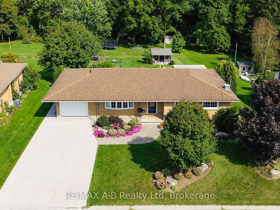 Highly desirable location! You will fall in love with this 3+1 bedroom all brick bungalow, situated on a generous lot, backing onto the scenic Grand Trunk Trail. Enjoy the best of both worlds with peaceful surroundings and walkable access to downtown St. Marys with its many amenities. The main floor features an open-concept living and dining area with sliding patio doors which leads to an elevated rear deck, perfect for entertaining or relaxing outdoors. The kitchen offers an abundance of storage, while the main level is complete with three bedrooms and a full 4-piece bathroom. Downstairs, you'll be impressed by the spa-like 3-piece bathroom with a tiled shower and cozy in-floor heating. The fully finished basement also includes a spacious family room with a gas fireplace, built in storage, an fabulous laundry room, an additional bedroom, and an office or den. Outdoor living is a highlight, with a lower covered patio, a firepit area backing onto mature trees, and a welcoming covered front porch. Additional features include an attached one-car garage, a new concrete driveway/walkway, a 220amp generator inlet plug and walk-out basement. This well-maintained bungalow is move-in ready and offers the perfect combination of comfort, convenience, and charm.