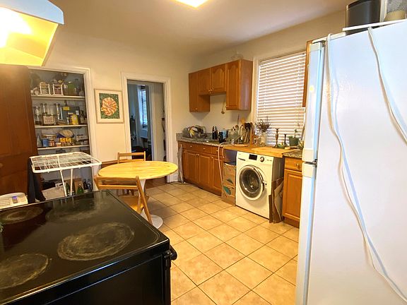Bright apartment on full second floor of Victorian house. New washer and dryer included in unit. Wood floors, new eat-in kitchen with cozy study. Private porch, one garage space. $3,250 monthly rent not including initial security deposit.