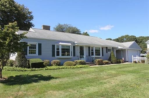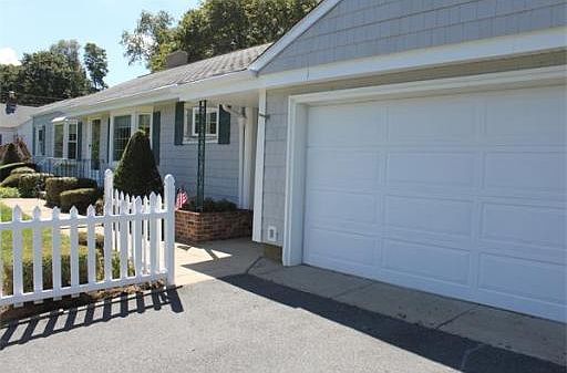 Large 2 Bedroom, 1.5 Bath ranch with spacious living room, large kitchen/breakfast area w/granite countertops, covered breezeway & attached 2 car garage. Home has a 3rd bedroom in the basement w/fireplace, 1/2 bath, & separate heat zone. Main level has a formal dining room w/bay window, a large fireplaced living room with bay window and a cozy, step-up nook area, 2 bedrooms and full bath. Hardwood flooring in the Living Room, Dining Room, the 2 Bedrooms, and in the breakfast area. Kitchen has laminate flooring and full bath has ceramic tile. Home has 3-zone heat with cast iron baseboards & updated, insulated windows. Basement has a half bath, a separate laundry room with laundry sink, a cedar closet, an office area, and a large workshop area, plus the 3rd bedroom with closet. Breezeway connects to a large deck with built-in benches & electric awning. Nicely landscaped yard with irrigation system and gorgeous stonewall across back border. Quiet neighborhood close to highways & shopping