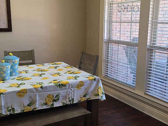 Welcome to your dream home in the desirable Krooked Kreek neighborhood! This all-brick home features an open-concept floor plan, complete with three bedrooms and two baths. The living room is inviting, while the formal dining room is ideal for dinner parties. The split floor plan includes a master suite with double vanity, walk-around closet, shower, and separate tub. The hand-scraped laminate flooring adds a unique and charming touch to the home. Step outside and relax on the wood deck patio overlooking the backyard. The property is surrounded by a privacy fence, and includes a storage building. The outdoor storm shelter ensures your safety in severe weather conditions. Don't miss out on the opportunity to make this beautiful home yours today!